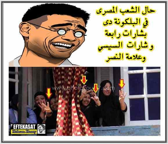 حال الشعب المصرى فى البلكونة دى بشارات رابعة و شارات السيسي وعلامة النصر